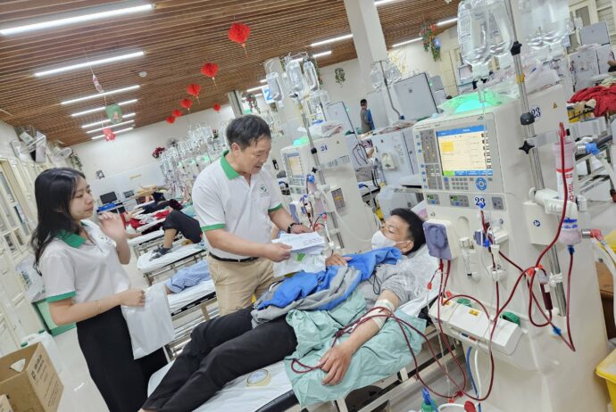 Da vi besøkte sykehuset for å formidle en hilsen og en gave fra herr Chương Jôn Đặng – Saigon Khai Thuế og fru Jenny Cao til pasientene ved Avdeling for kunstig nyre og Barneavdelingen, møtte vi en virkelighet som står i sterk kontrast til feststemningen utenfor.