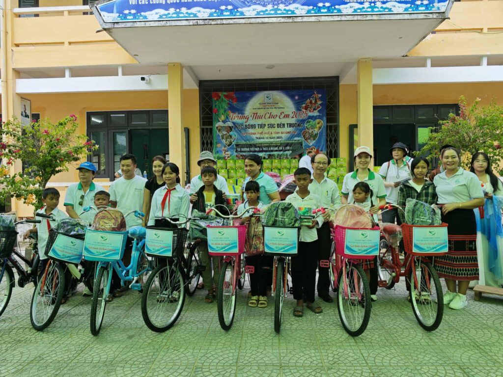 – 8 stipender med sykler (2.000.000 VND pr. stipend, støttet av Phùng Nhu Đào)