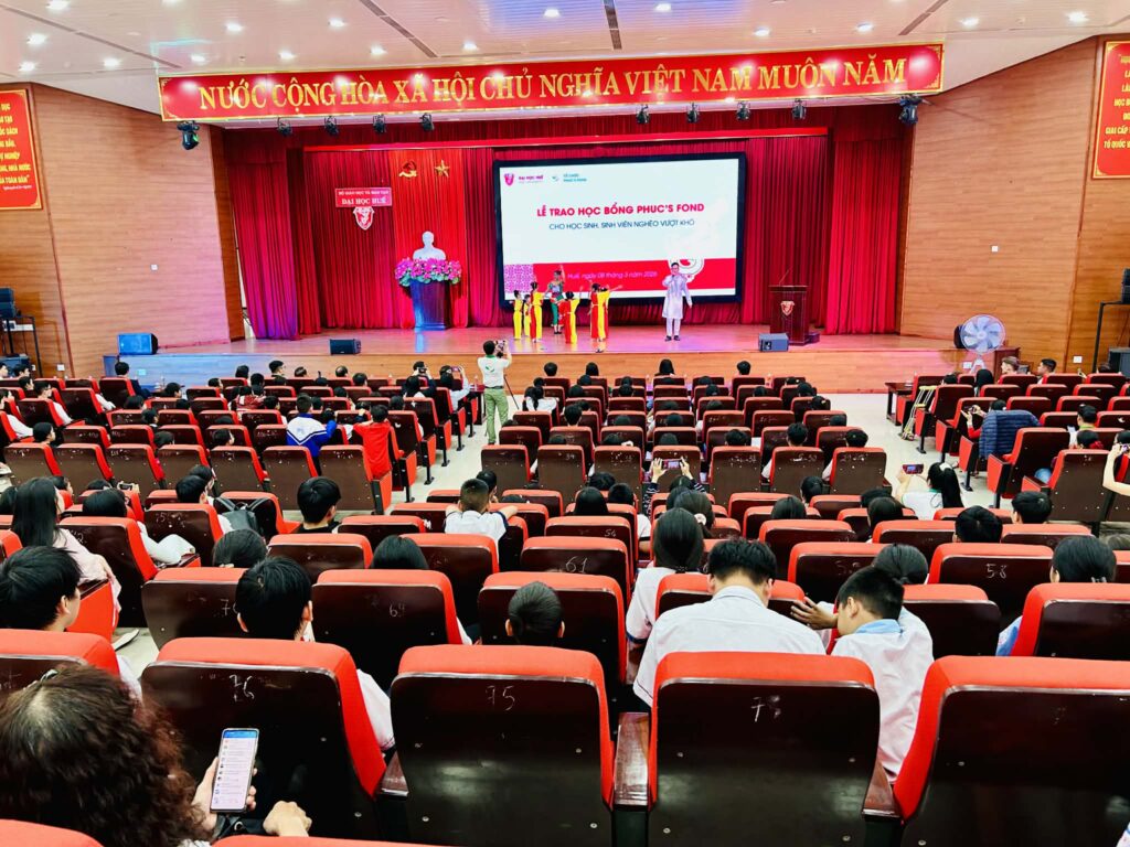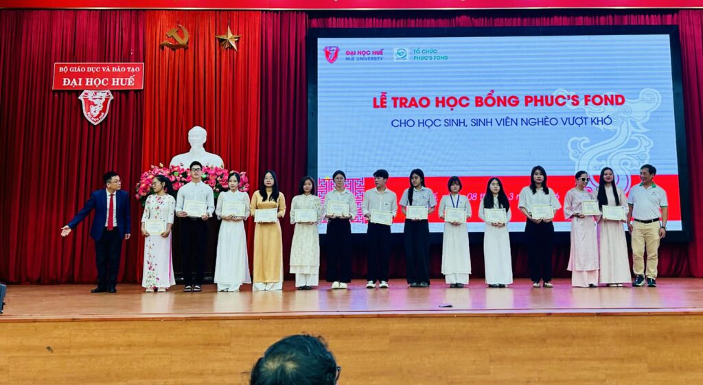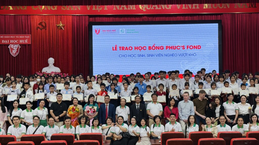 I går, søndag 8. mars 2026, i auditoriet ved Hue-universitetet (1 Điện Biên Phủ), arrangerer Phuc’s Fond i samarbeid med Hue-universitetet den årlige stipendseremonien for elever og studenter som studerer i Hue by. Formålet med programmet er å støtte fattige, men flittige elever og studenter, slik at de får muligheten til å fortsette utdanningen sin.